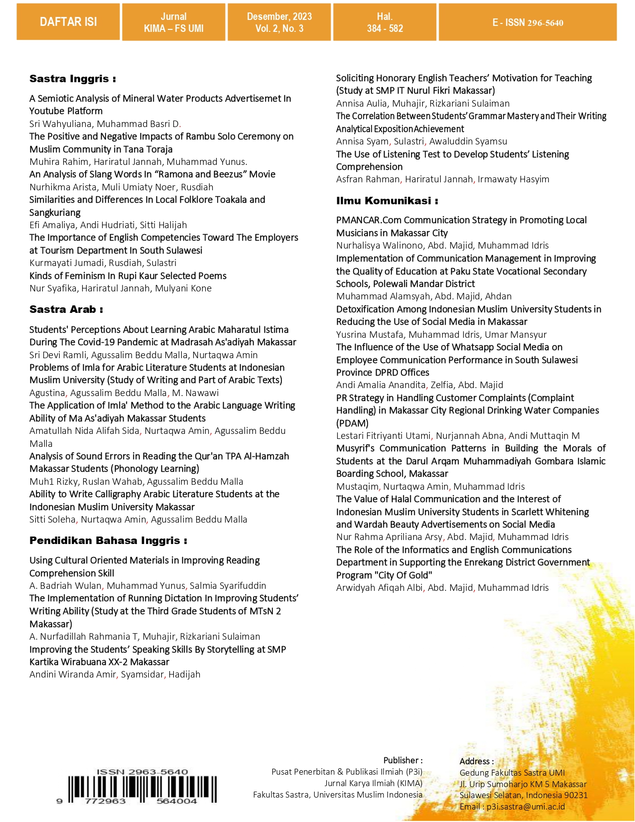 Jurnal Karya Ilmiah Mahasiswa (KIMA) by http:/jurnal.fs.umi.ac.id is licensed under a is licensed under a Creative Commons Attribution-ShareAlike 4.0 International License.