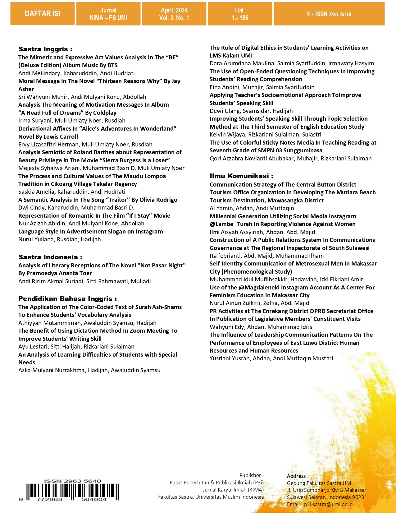 Vol. 3 No. 1 (2024): Karya Ilmiah Mahasiswa (KIMA)